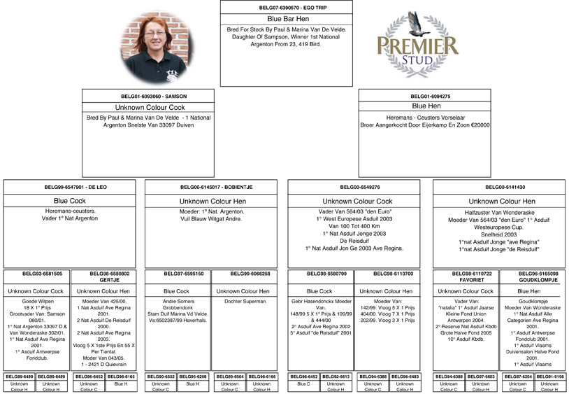 When the name Marina Van De Velde is mentioned the next thing that’s talked about is the superbird Samson, winner of 1st National Argenton 23,419 birds. Better than that is the fact that Samson had the fastest velocity from the entire convoy of 33,097 birds – so a real winner.