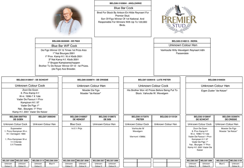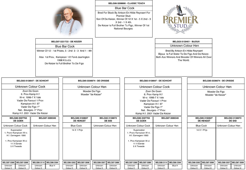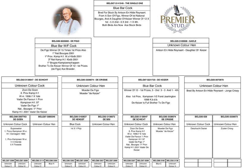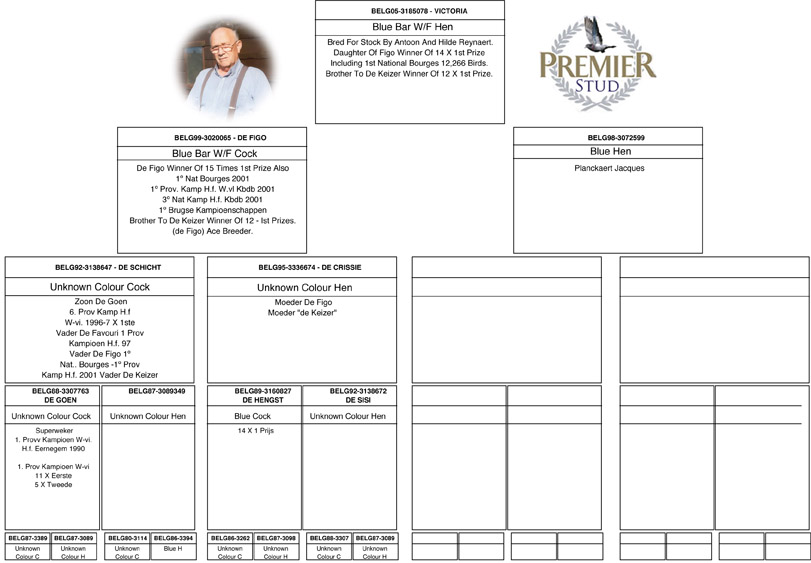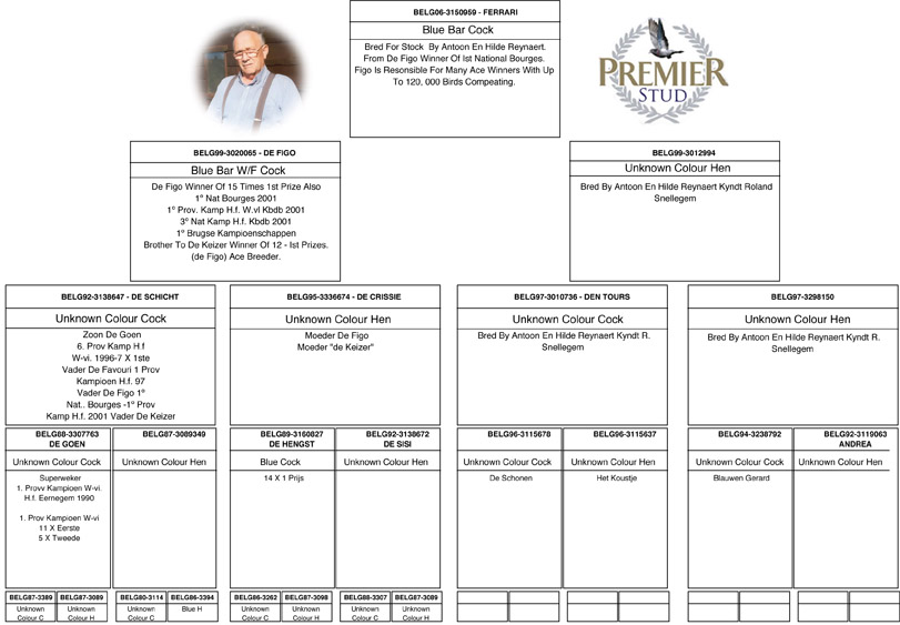 In many countries all over the world, fanciers talk about the amazing racing & breeding pigeon “Figo” bred and owned by the Reynaerts. Not only did “Figo” win 1st National Bourges from 12,266 pigeons his blood lines are responsible for pigeons winning with up to 99,000 birds competing from Passendale in West Flanders near Roselare.