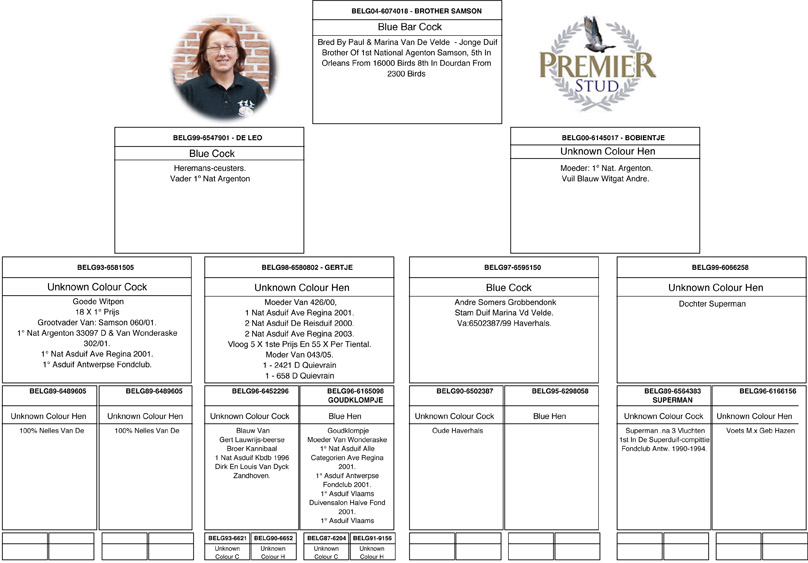 When the name Marina Van De Velde is mentioned the next thing that’s talked about is the superbird Samson, winner of 1st National Argenton 23,419 birds. Better than that is the fact that Samson had the fastest velocity from the entire convoy of 33,097 birds – so a real winner.